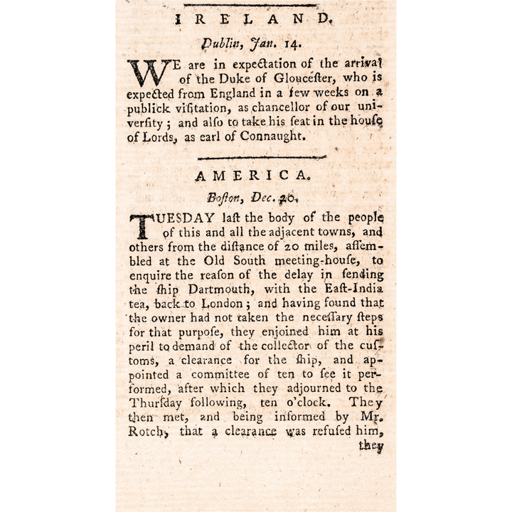 “BOSTON TEA PARTY” Extensive Report “America. - Boston, Dec. 20” London Magazine Published January 1774